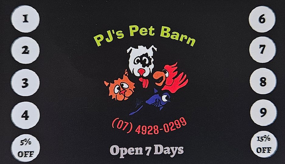 The Loyalty card can only be stamped with a PJ’s Pet Barn Stamp by a PJ’s Pet Barn Staff Member!